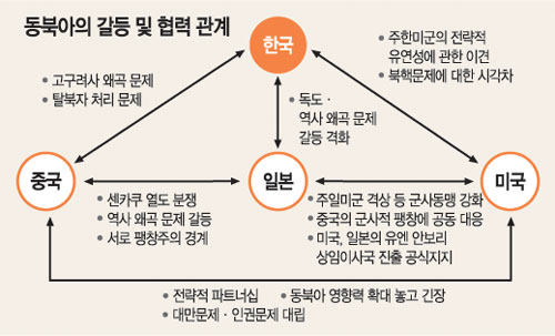 바탕에는 각국에서 발흥하는 배타적 민족주의가 도사리고 있다. 이런 상황 속에서 한국이 내건 ‘할 말은 하는 자주 외교’ 노선은 미국 일본