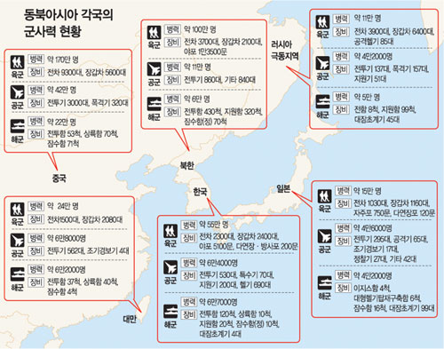 최근 몇 년간 진행되어 온 동북아 각국의 군비 증강은 ‘브레이크 없는 질주’와 같다. 중국과 일본 러시아가 군비 경쟁에 몰두하면서 동북아의